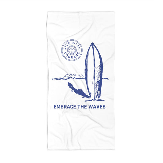 Our Beach Towel Collection combines function with inspiration. Perfect for the beach, pool, or outdoor adventures, each towel features bold designs that remind you to relax, recharge, and Live With Courage® wherever the waves take you. Pair them with a cool Tank Top or sip from a Courage Mug as you relax.