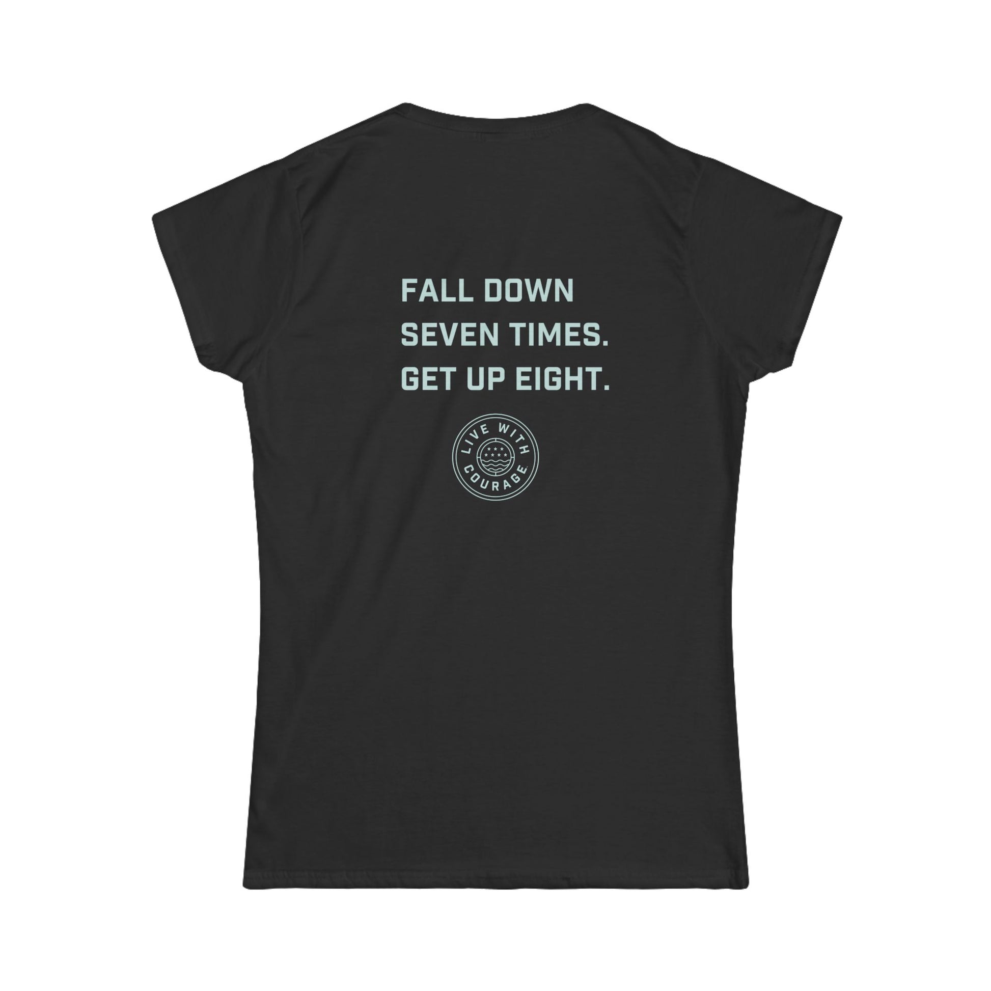 Embrace the power of resilience with our "Fall Down Seven Times" Women's Softstyle Tee. This timeless ancient proverb aren't just words on a shirt – it's a philosophy of unbreakable spirit and unwavering determination.