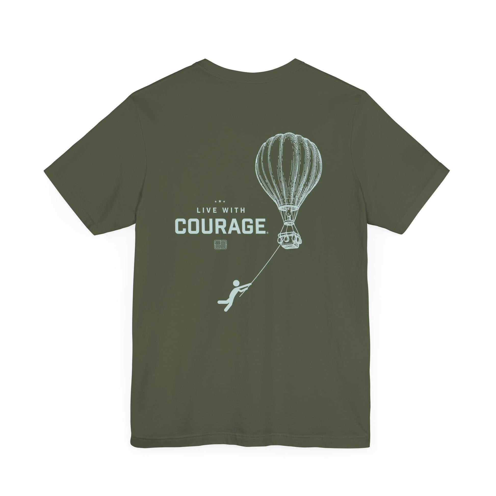 Sometimes life requires you to hold on tight and endure the ride! This inspiring unisex t-shirt features a vibrant hot air balloon design with a determined passenger hanging on for the adventure of a lifetime.
