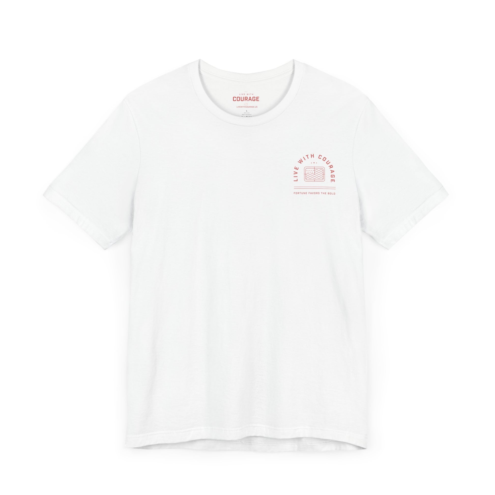 - Live With Courage® logo on front chest featuring the 7 stars representing Justice, Humility, Self-Discipline, Fortitude, Faith, Hope and Compassion