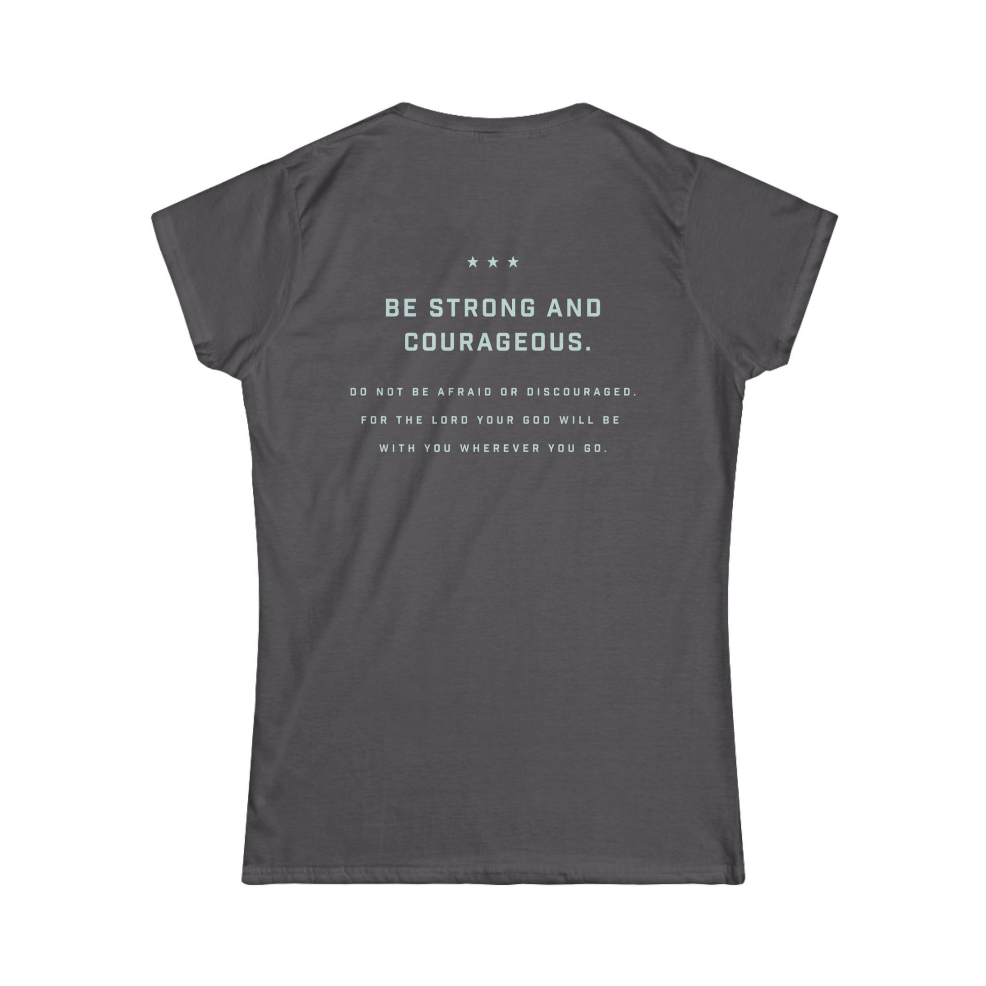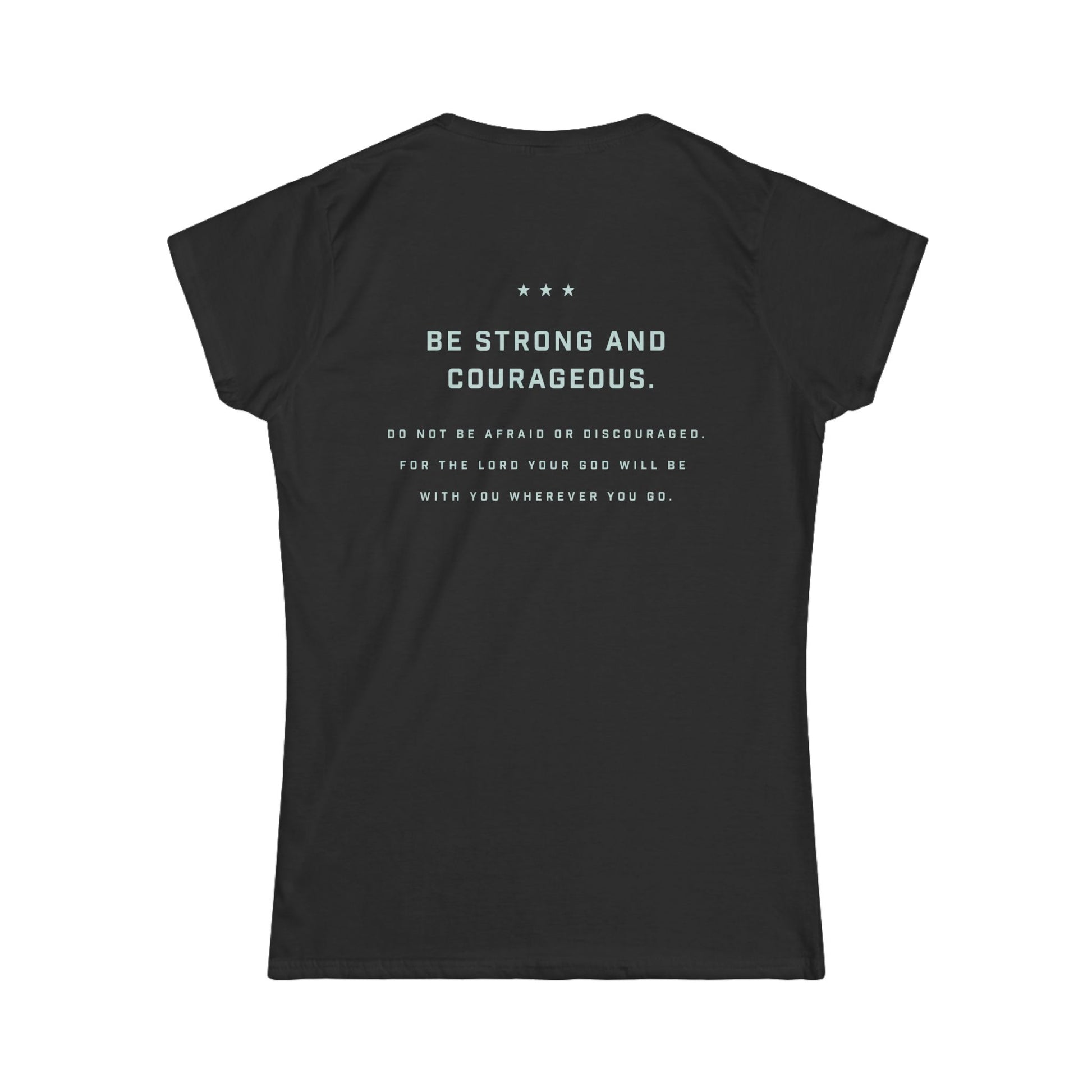 Embrace God's powerful promise with this beautifully designed women's softstyle tee that combines timeless biblical truth with feminine elegance. Featuring the inspiring Joshua 1:9 verse, this tee is perfect for Christian women who want to wear their faith with grace and confidence.