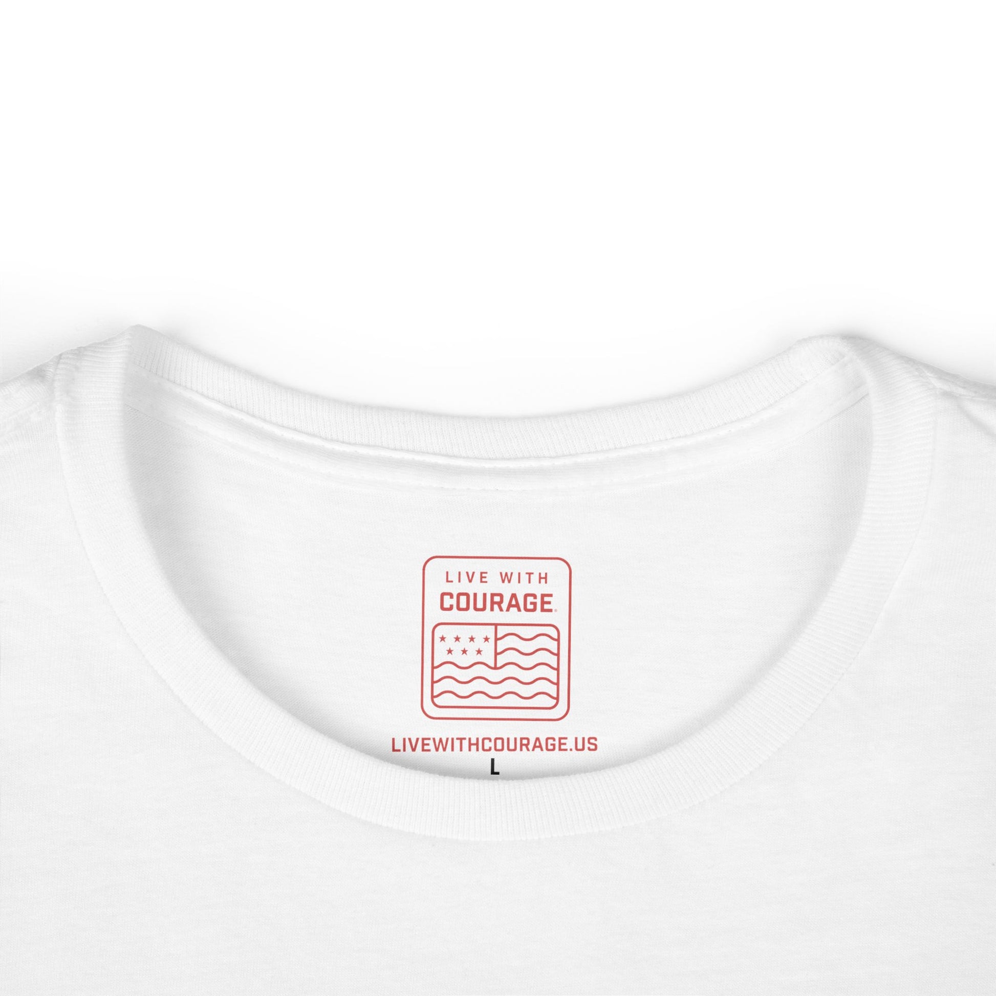 Show your love for America with this powerful patriotic t-shirt featuring the majestic Bald Eagle - the ultimate symbol of American freedom and strength. The front displays our soaring eagle atop the Live With Courage® logo, while the back boldly declares you're a Proud Patriot who stands for liberty and justice.