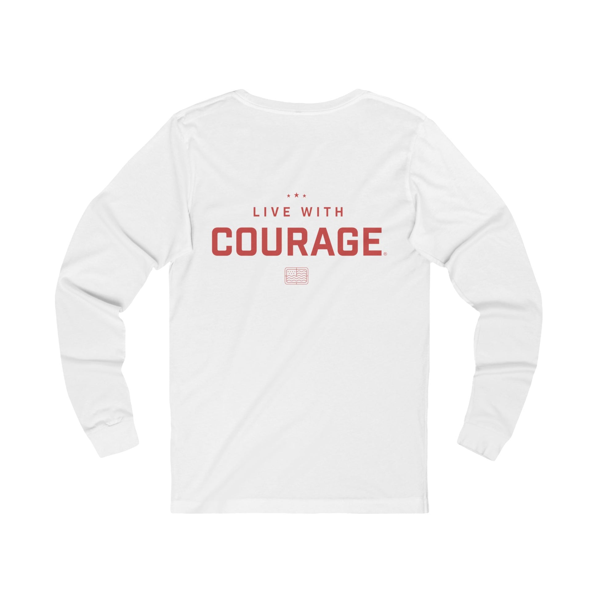 • Seven Stars of Character: Back displays our Live With Courage® logo with a stylized American flag containing 7 stars representing Justice, Humility, Self-Discipline, Fortitude, Faith, Hope, and Compassion - the virtues that define true champions